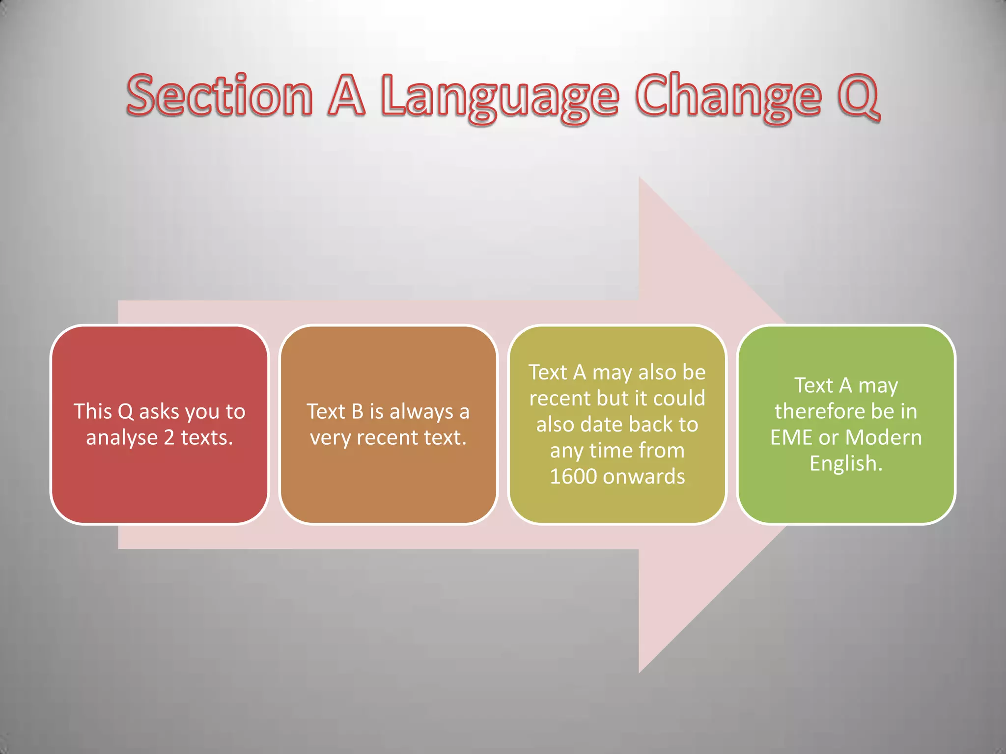 This document provides guidance on summarizing and analyzing two texts for a question. It outlines focusing on representation, language use, and change in the first bullet point. The second bullet point asks to discuss theoretical aspects of language change. It provides directions to give an overview comparing the two texts in terms of style, structure, and topic representation. It also gives guidance on analyzing variations from contemporary English and aspects of any modern texts. Theories and frameworks are recommended to use in the analysis.