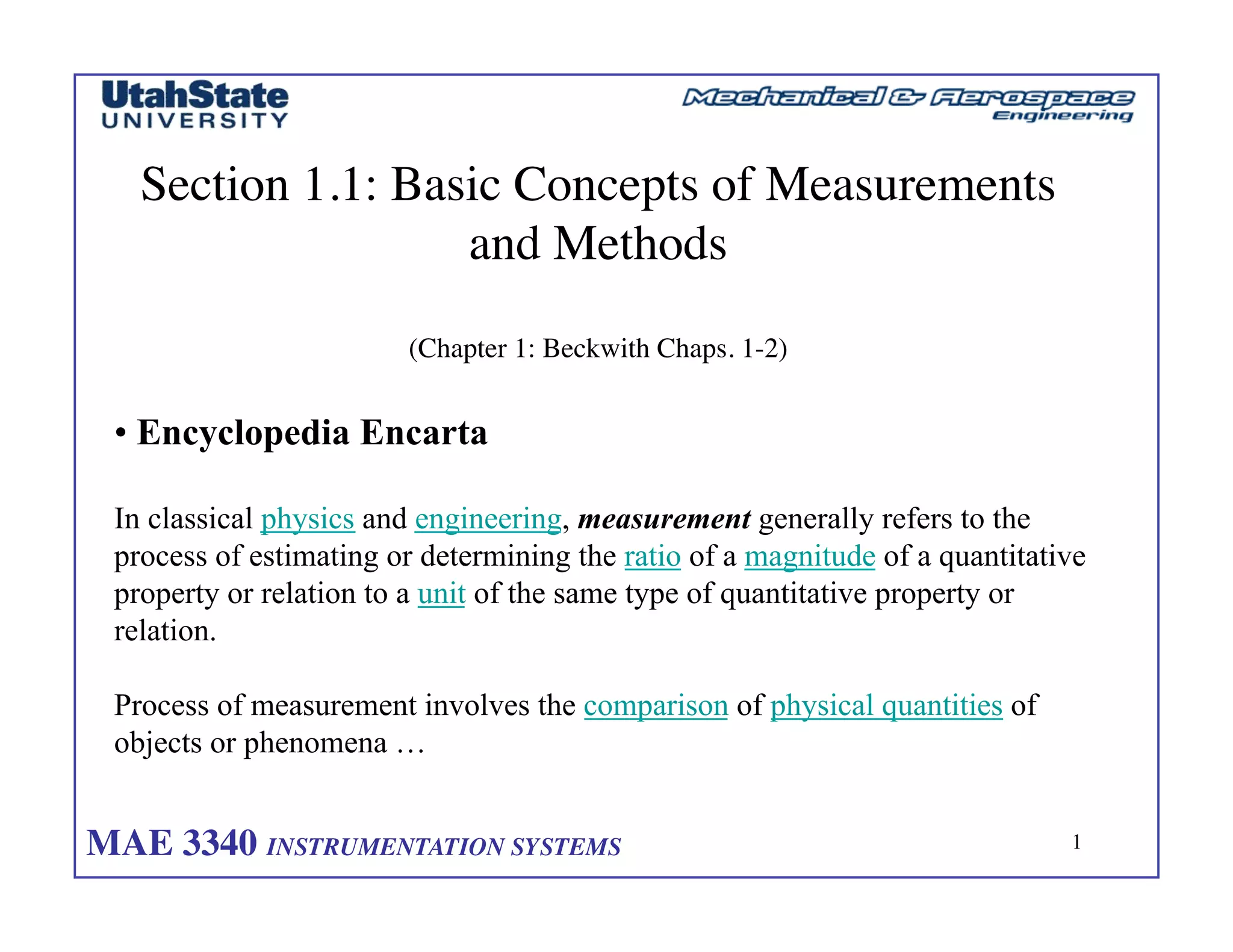 The document discusses concepts related to measurement and instrumentation systems, including: