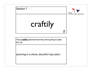 The document contains 18 entries with vocabulary words, part of speech labels, and definitions. Each entry includes a word, its part of speech, a definition, and the section number. The words range from "morosely" to "narcissist" and include part of speech labels like adverbs, adjectives, nouns, and verbs. The definitions provide short explanations of word meanings.