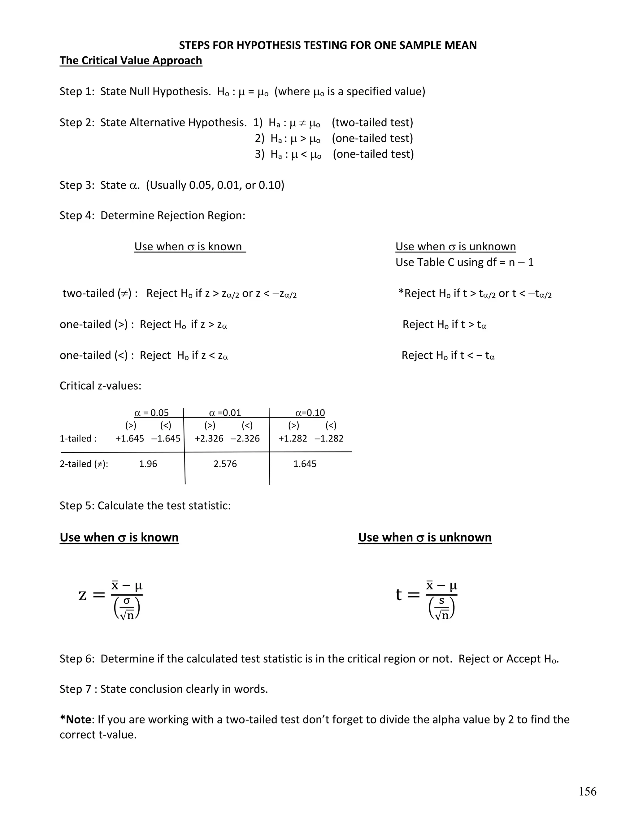 The document discusses hypothesis testing for population means, detailing the critical value and p-value approaches. It explains null and alternative hypotheses, types of errors (Type I and II), and outlines the steps for conducting hypothesis tests with specific examples. Additionally, it presents scenarios for testing hypotheses using both known and unknown population standard deviations.