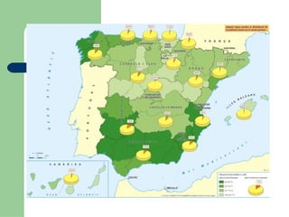 Latifundis: A partirde 100 ha. Ha evolucionat dels contractes de parceria (un aporta la propietat, l’altra la feina) i arrendaments (cessió de l’explotació de la terra a un preu i temps determinat) per propietari absentista a gestió directa. Agricultura extensiva: Mecanització es necessita mà d’obra especialitzada. Treballadors eventuals contractes a estrangers per temporada (dones de Romania, Colòmbia i Marroc a la temporada de la collita de maduixes, taronges, etc.) Grans beneficis.