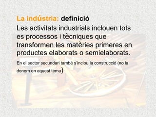 Les activitatsindustrials, juntament amb l’extracció de minerals i