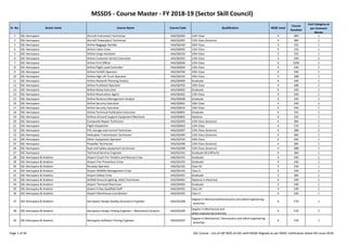The document outlines the NSQF aligned courses offered by Sector Skill Councils, specifying the revised hourly rates for 2018-2019 based on common norms. It includes detailed information on various courses across sectors, such as aerospace and agriculture, along with qualification levels, course durations, and cost categories. The rates are subject to an annual increment of 10% according to the guidelines.