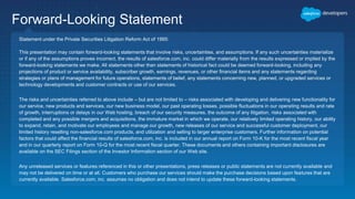 The document discusses secure development practices on the Salesforce platform. It covers topics like cross-site scripting (XSS), open redirects, and cross-site request forgery (CSRF). For XSS, it describes different types (reflected, stored, DOM) and provides examples of how to properly encode output. For open redirects, it explains the risk and best practices like whitelisting URLs. For CSRF, it discusses how to prevent malicious requests by using tokens validated on the server. The document aims to help developers understand and address common vulnerabilities.