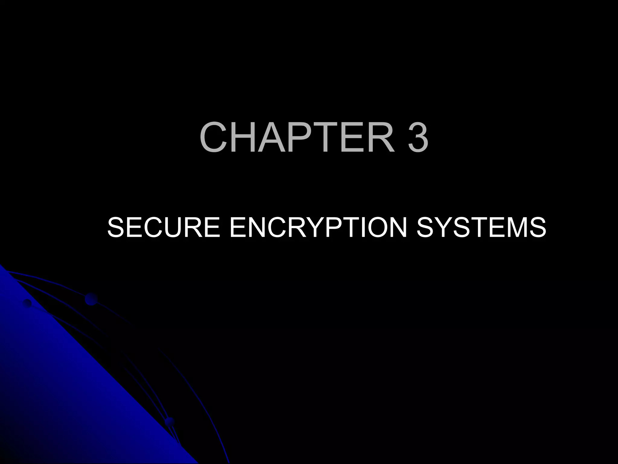This document provides an overview of symmetric and asymmetric cryptography. Symmetric cryptography uses the same key for encryption and decryption, while asymmetric cryptography uses different keys. The Merkle-Hellman knapsack cryptosystem was one of the earliest public key systems, but it was broken. The RSA algorithm uses a public/private key pair to encrypt and decrypt messages securely. DES was developed as a standard for encrypting sensitive data.