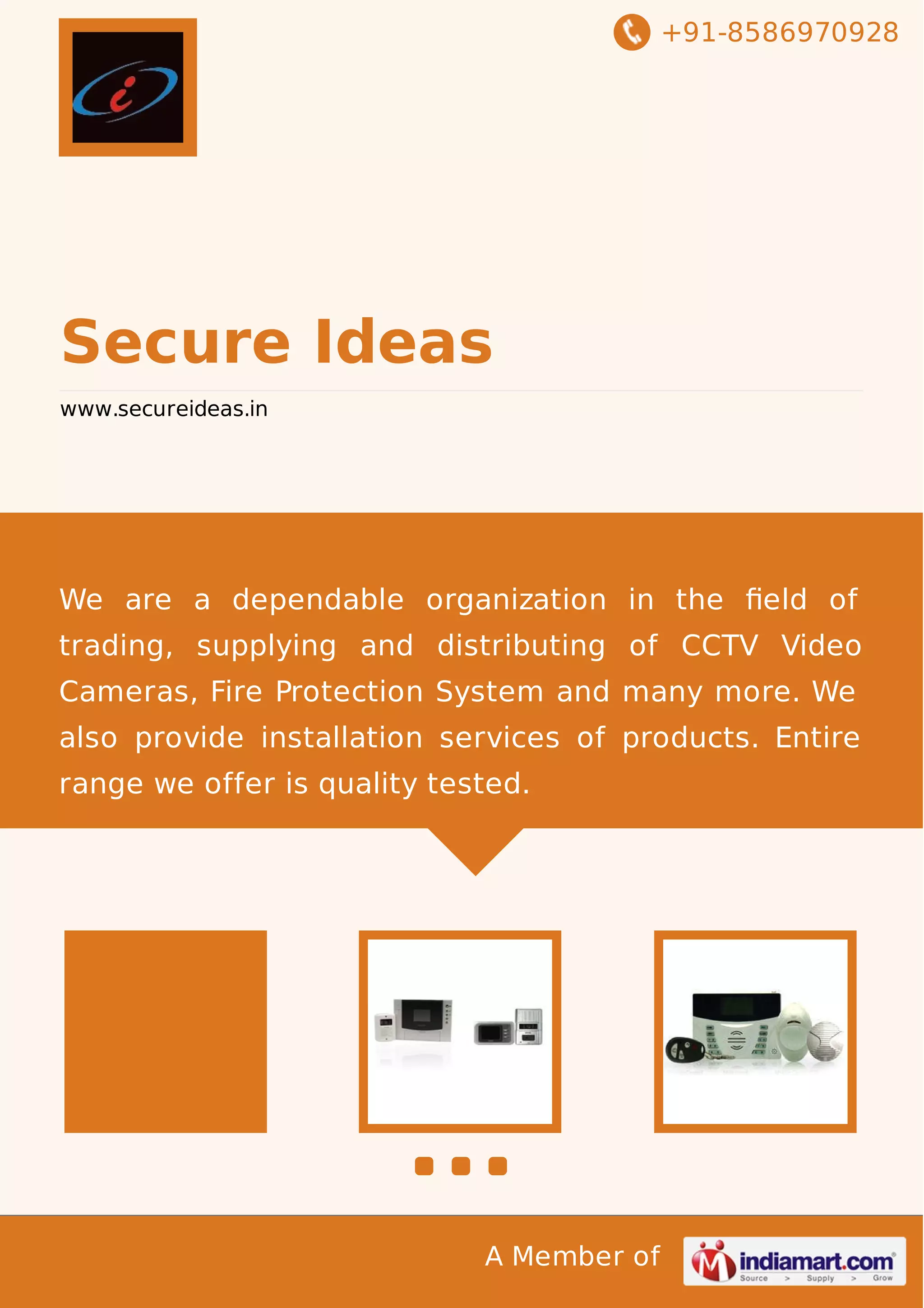 Secure Ideas is a sole proprietorship security products supplier and installer based in Hyderabad, India. It was established in 2006 and supplies, distributes, and trades a wide range of security products including CCTV cameras, video door phones, alarm systems, and fire protection systems. The company works with major brands and is led by proprietor Mrs. Rachana Tulshan, who has helped the business grow its reputation and product offerings.