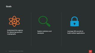 advancing quantum cryptography Explore solutions and standards Leverage JDK security to build resilient applications 2 Copyright © 2025, Oracle and/or its affiliates
