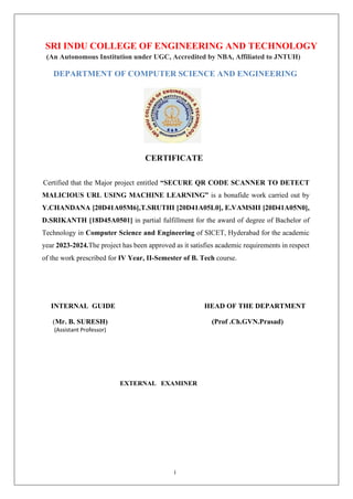 Certified that the Major project entitled “SECURE QR CODE SCANNER TO DETECT