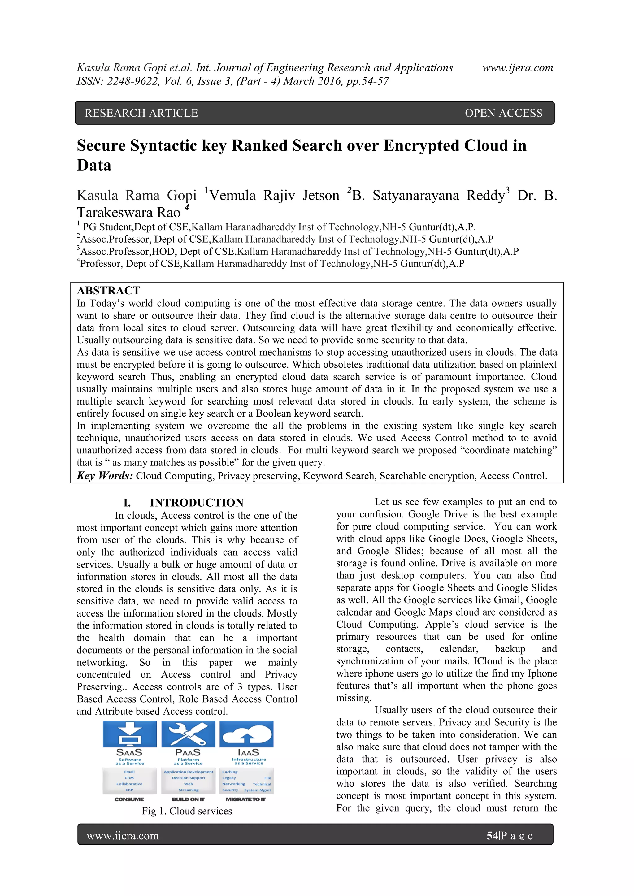 The document presents a system for secure, syntactic keyword-ranked searching over encrypted data in cloud computing. It addresses issues with existing single-keyword search methods by proposing a multi-keyword search approach using 'coordinate matching' to enhance data retrieval accuracy while ensuring access control and user privacy. The development of this system aims to improve search efficiency and secure sensitive data stored in cloud environments.
