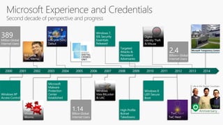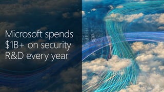 The document discusses cybersecurity and protecting information. It provides statistics on why organizations want to protect information, such as to reduce data leakage, meet compliance requirements, and partition sensitive data from unauthorized users. It then lists some of Microsoft's security capabilities for protecting devices, customer data in the cloud, on-premises environments, and customer data both in the cloud and on-premises.