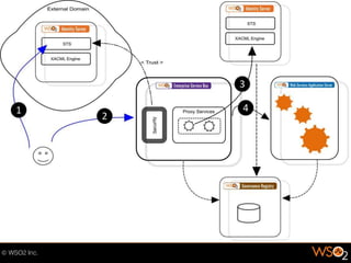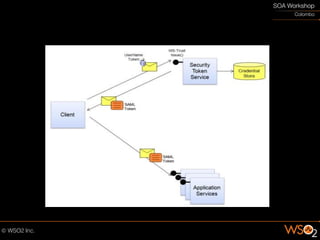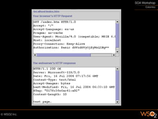 The document discusses the importance of securing web services to protect data from potential exposure and alteration by unauthorized users, emphasizing that HTTPS only provides transport-level security. It outlines methods for enhancing security at the message level using XML encryption, signatures, and WS-Security protocols to ensure confidentiality, integrity, and authentication. Additionally, the document highlights the challenges of managing authentication for external users and communicating security requirements with external domains.