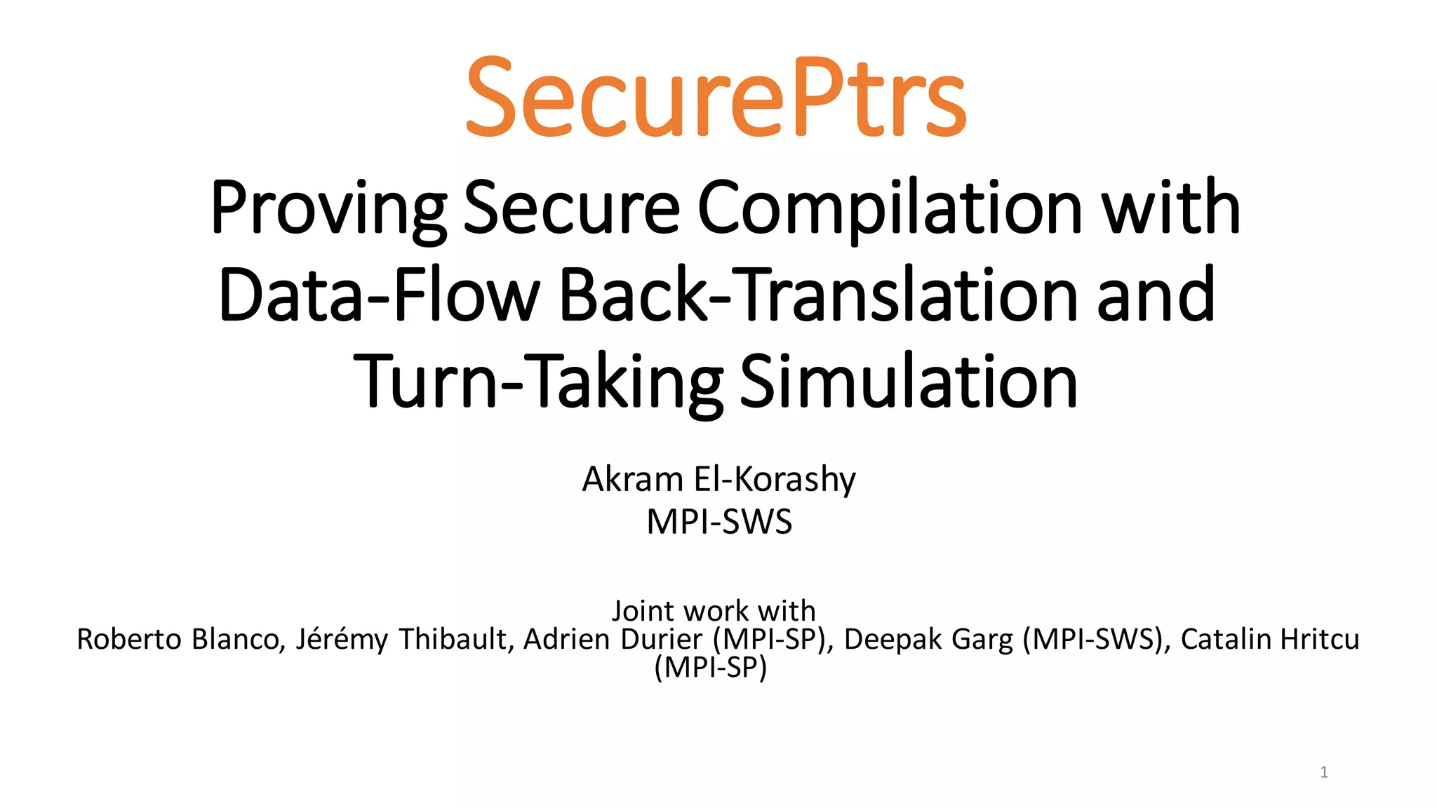 The document discusses secure compilation of partial programs, highlighting the risks associated with linking to buggy or malicious contexts and the importance of proving the security of compiled programs. It introduces proof techniques, particularly data-flow back-translation, aimed at ensuring that the compiled programs maintain the robust safety of the original source programs. The work addresses challenges in memory sharing and seeks to improve the trace-directed back-translation method to accommodate syntactic dissimilarity between source and target programs.