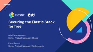 This presentation discusses securing the Elastic Stack for free. It provides an overview of how security features have evolved from separate plugins to being integrated and enabled by default. It then summarizes the three main steps to enable security: obtaining TLS certificates, configuring passwords, and enabling security in Elasticsearch. Finally, it discusses how role-based access control and Kibana spaces can be used to implement authorization and multitenancy.