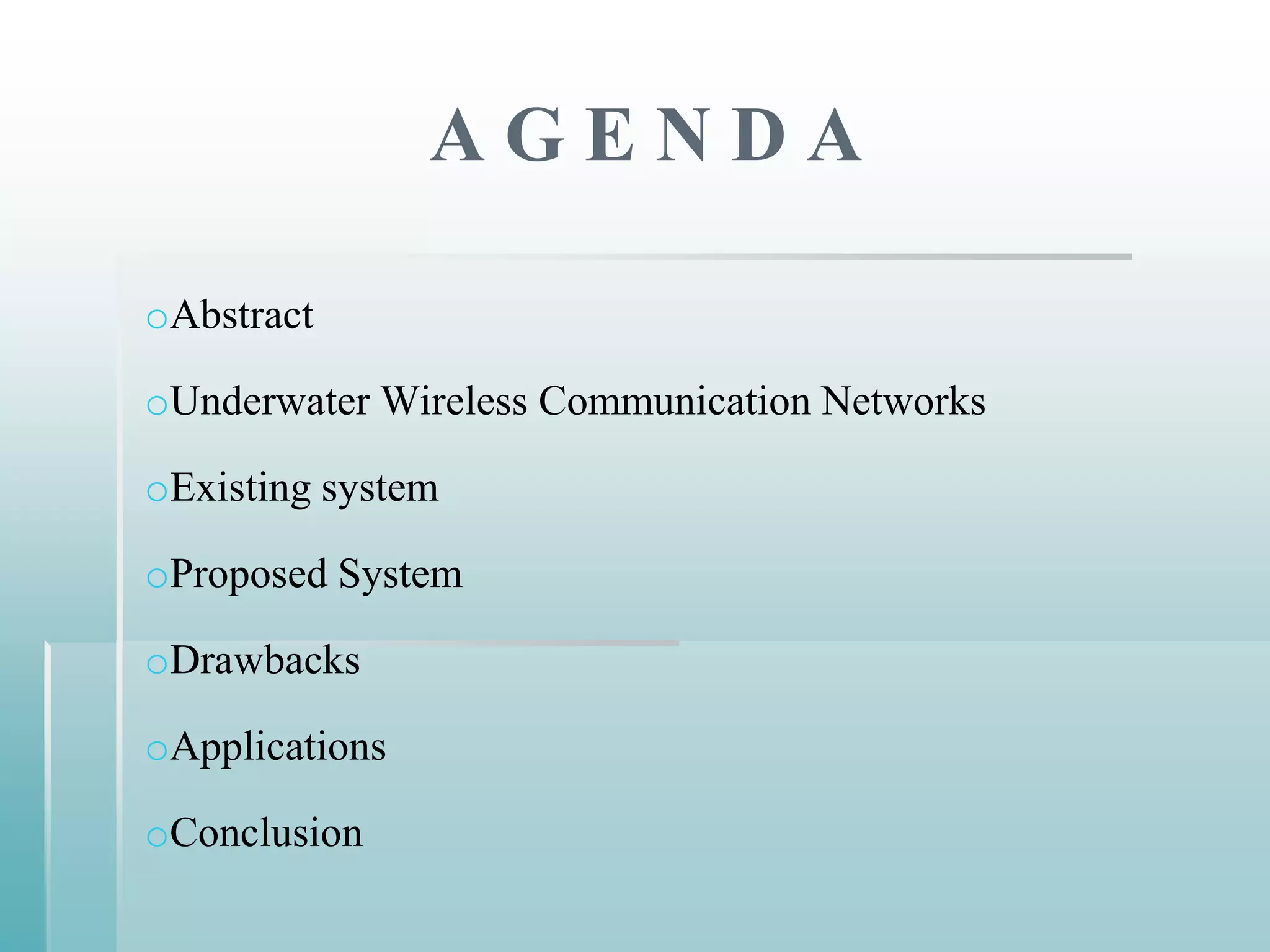 This document summarizes a seminar presentation on securing underwater wireless communication networks. It discusses the existing challenges with underwater wireless networks including high bit error rates, propagation delays, and low bandwidth. It proposes three schemes for securing such networks: secure time synchronization to enable power saving; secure localization for location information and data tagging; and secure routing to reject paths with malicious nodes. The techniques aim to provide secure data transmission and are based on mechanisms like time synchronization, localization using time/signal information, and routing protocols.