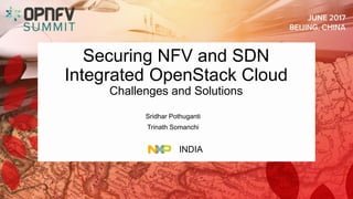 The document addresses security challenges and solutions for NFV (Network Function Virtualization) and SDN (Software-Defined Networking) within integrated OpenStack cloud environments, detailing threat analyses and various vulnerabilities. It outlines the importance of security measures such as architecture approaches, security management frameworks, and compliance initiatives by OPNFV and OpenStack. Additionally, the text emphasizes the need for robust security practices and monitoring across virtualized network infrastructures.