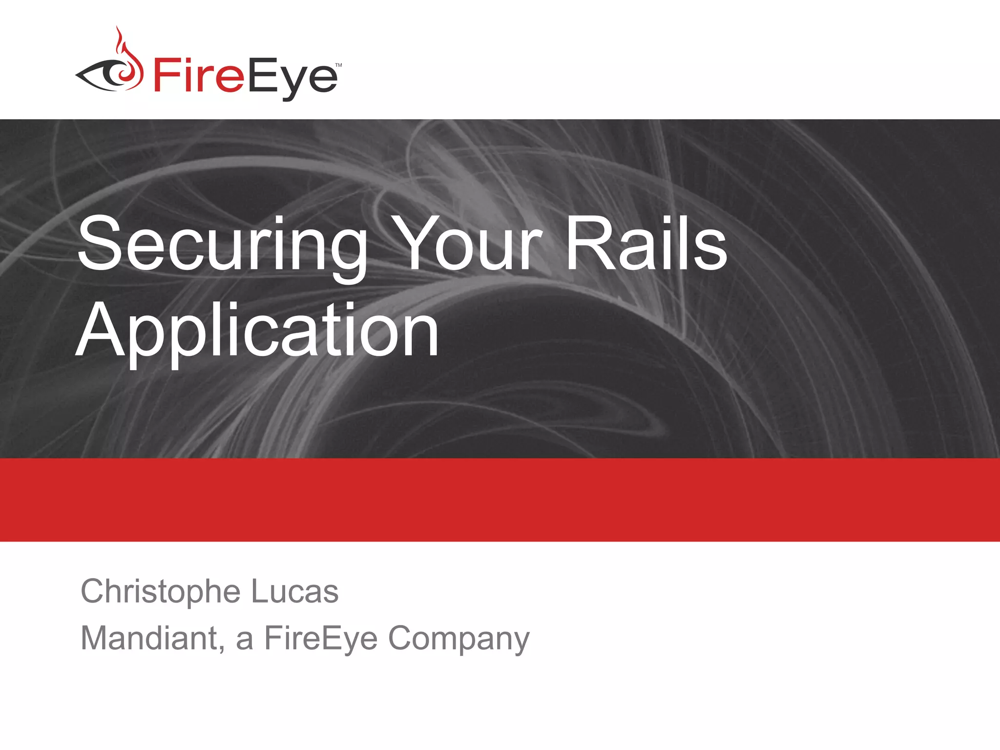 The document discusses securing Ruby on Rails applications. It covers topics like transport layer security (TLS and SSL), session hijacking, content security policy, cross-site scripting protection, and static code analysis tools. Gems like secure_headers, Brakeman, codesake-dawn and gauntlt can help audit code and build attacks to test vulnerabilities. Maintaining TLS is important to protect against man-in-the-middle attacks and securely transmit sensitive data like passwords.
