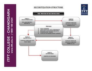 Securitization is the process of transforming illiquid assets like mortgages into marketable securities. This is done by pooling cash-flow producing assets and packaging their value as securities to sell to institutional investors. Securitization allows whole loan lenders to sell loans in the secondary mortgage market. A mortgage loan is secured by real property through a mortgage note and granting of a mortgage.