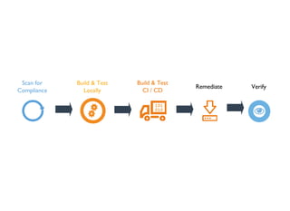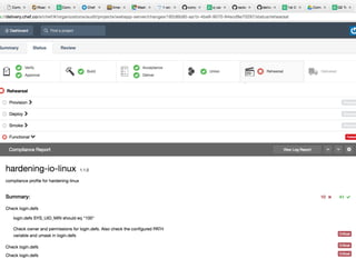 This document discusses Chef Compliance and how it helps with security and DevOps for organizations that move quickly. It introduces InSpec, an open source framework that allows defining infrastructure compliance and security checks as code. With InSpec, compliance checks can be automated and run continuously alongside infrastructure code. Traditional compliance is time-consuming and separate from development workflows, but defining compliance specifications in InSpec code allows integrating compliance into DevOps pipelines for continuous verification.