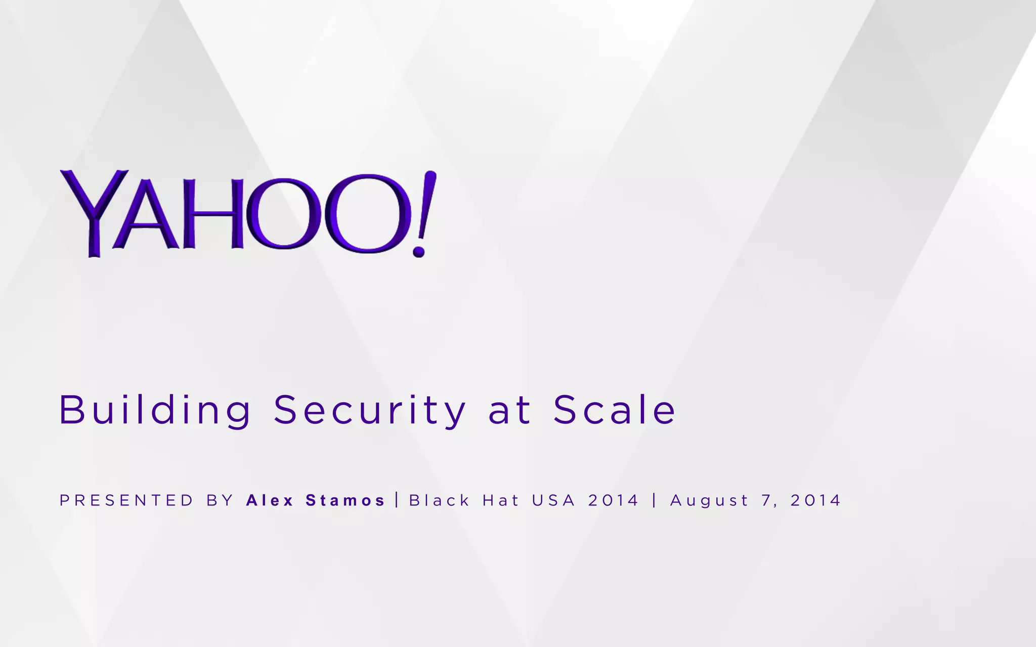 The document presented by Alex Stamos at Black Hat USA 2014 discusses the challenges and evolution needed in the security industry to scale effectively, particularly in light of user diversity and the impact of security nihilism post-Snowden. It emphasizes the necessity for enterprise security teams to adapt to contemporary threats and user needs, while providing innovative ideas for new security solutions. The presentation also showcases Yahoo's approaches to strengthen its security efforts through various technical enhancements and a focus on proactive measures.