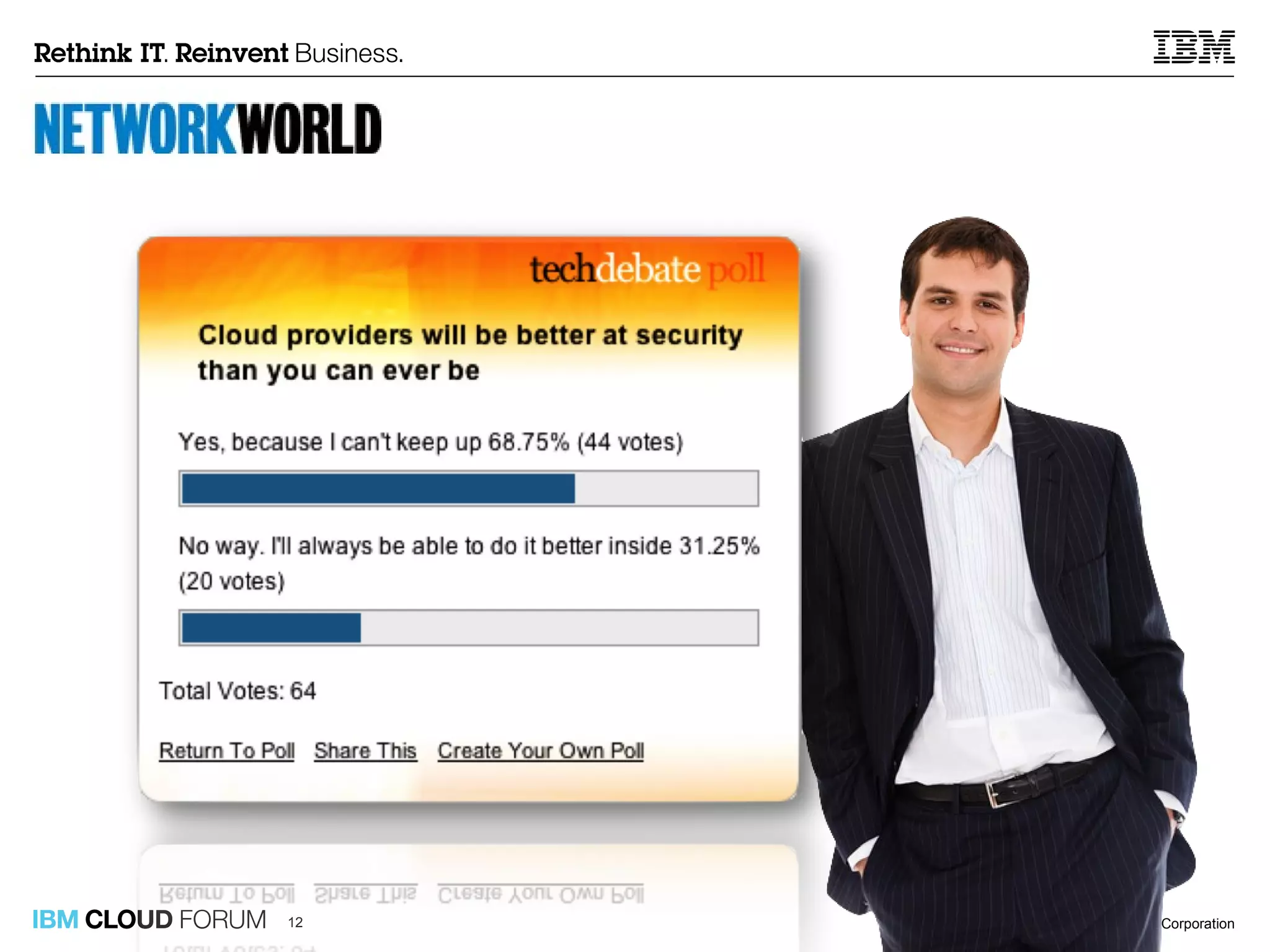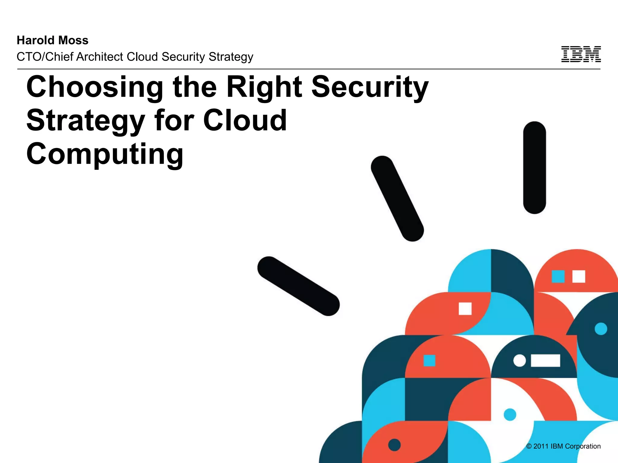 The document discusses cloud computing security strategies and IBM's approach. It recommends identifying important data, understanding different cloud models and workloads, and building security into the cloud fabric. IBM's security portfolio applies workload-driven security across private, public and hybrid clouds. The document provides guidance on preparing to move workloads to the cloud securely.