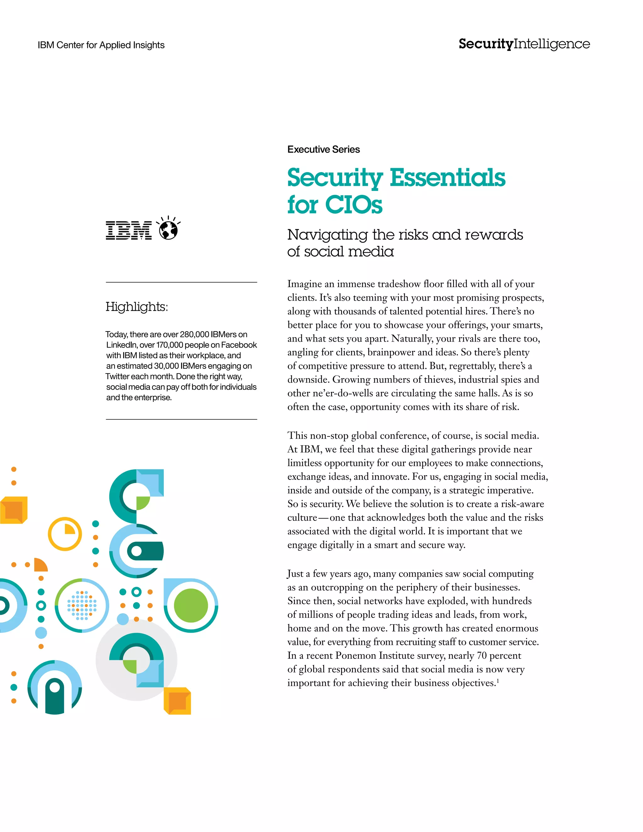 The document discusses security essentials for CIOs regarding social media. It makes three key points: