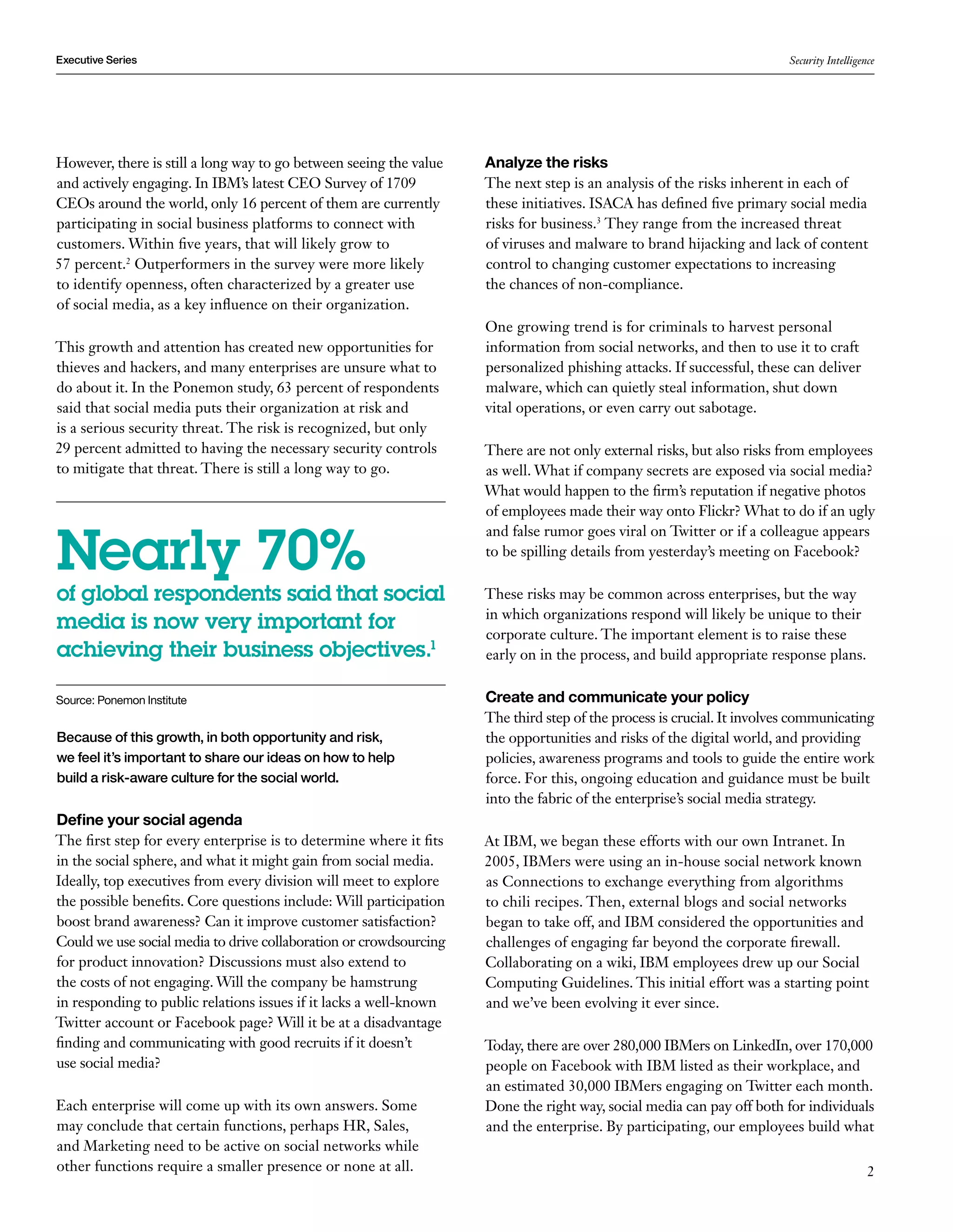 3) At IBM, they have embraced social media engagement but also created social computing guidelines and ongoing education to build a risk-aware culture and engage digitally in a smart and secure way.