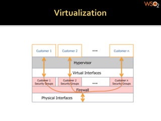 The document discusses cloud computing and platforms as a service (PaaS). It notes that PaaS can provide departments their own isolated environments while sharing hardware resources, reducing costs. Multi-tenancy in PaaS faces challenges around data and logic isolation, and security. Techniques for data isolation include separate databases/schemas and views, while access security uses trusted connections and secure database objects.