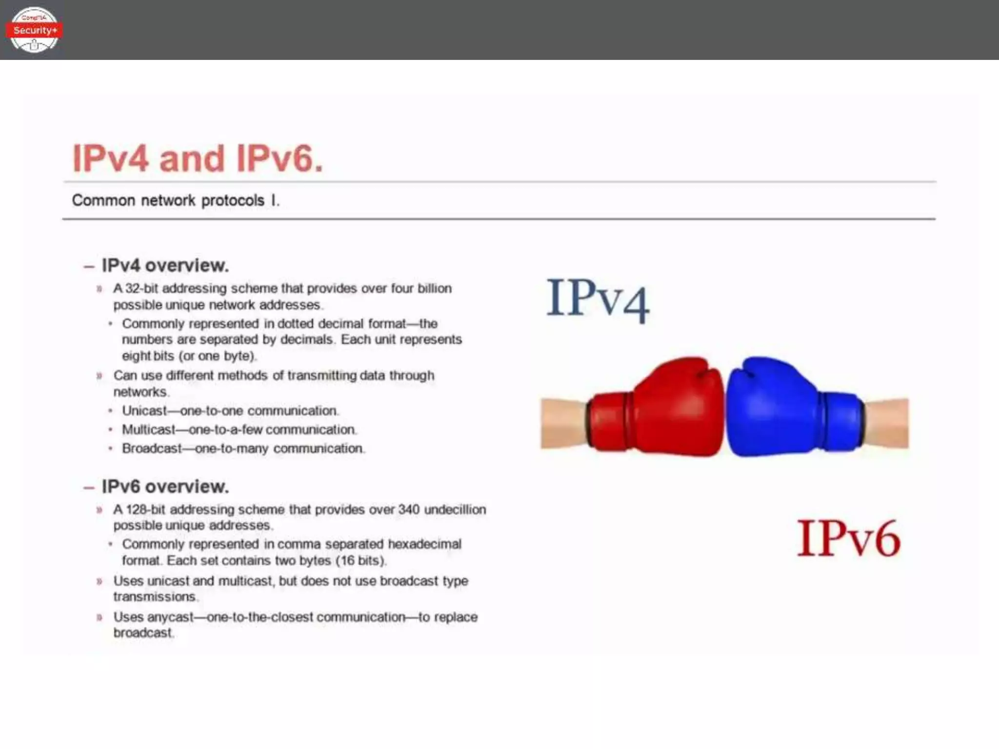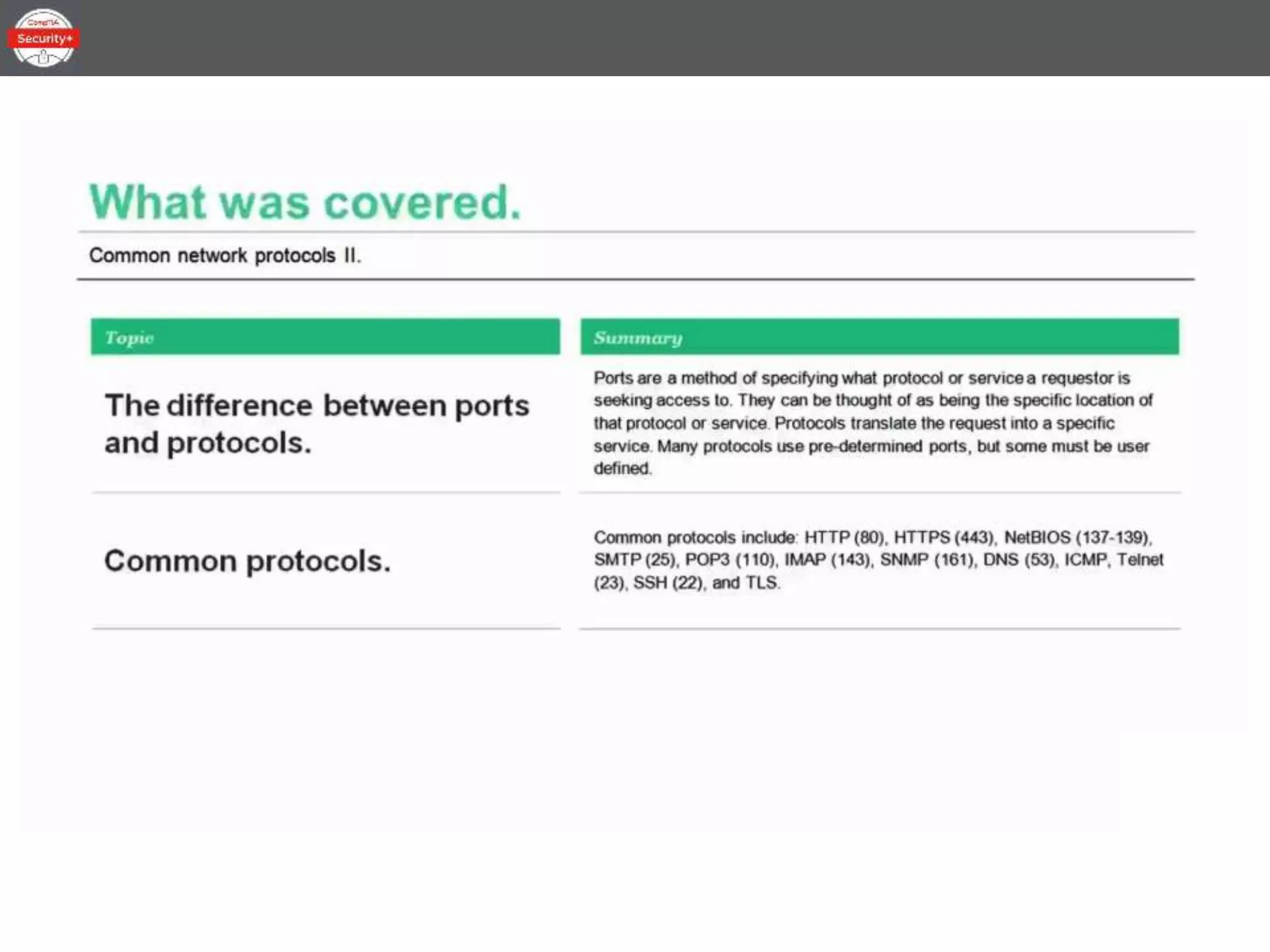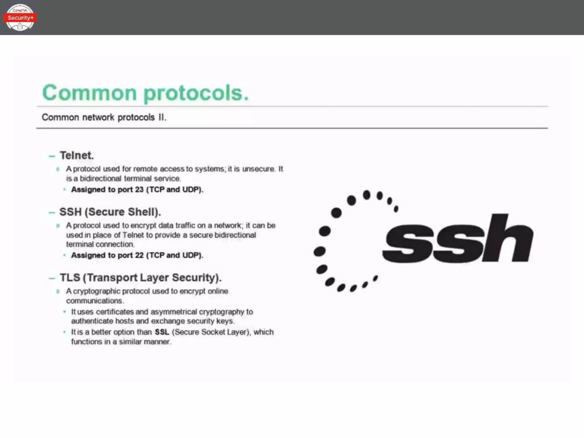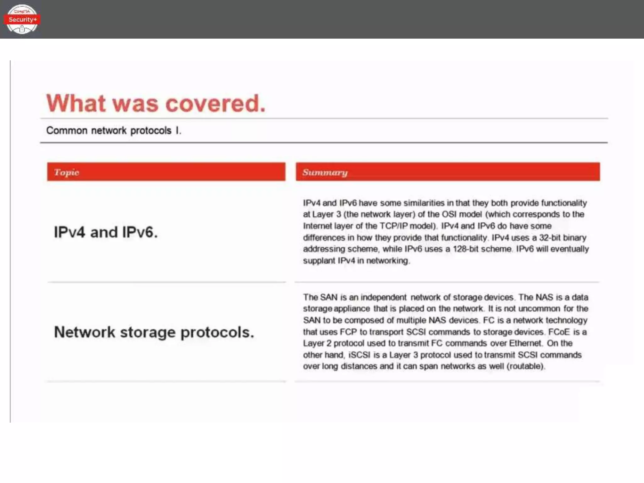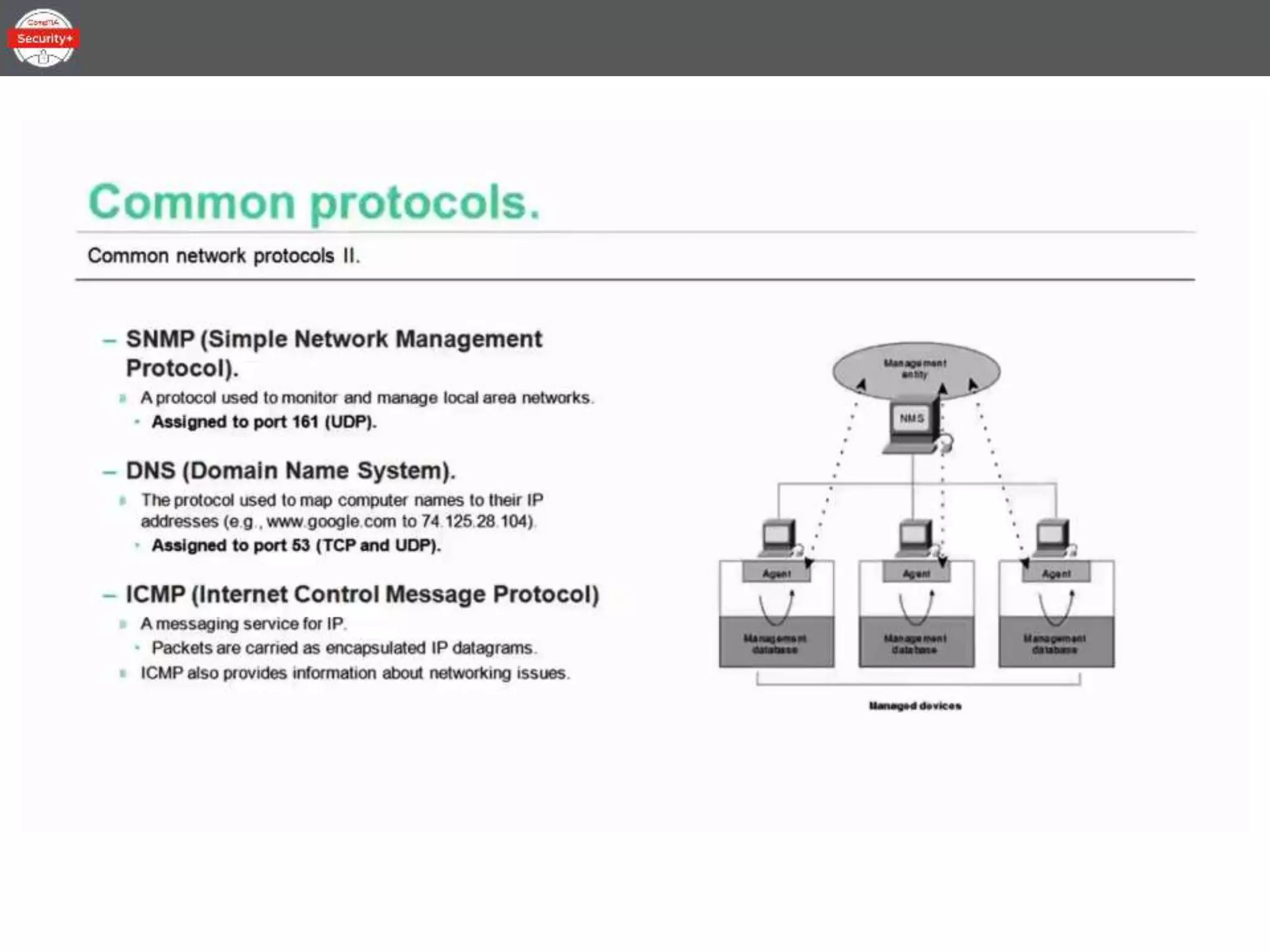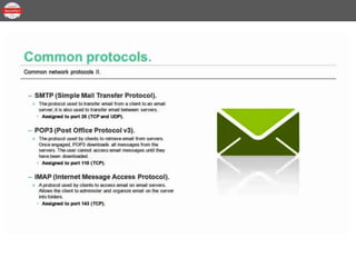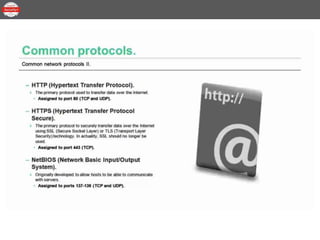 This document provides an overview of the topics to be covered in a 30-minute Common Network Protocols lesson for CompTIA Security+ certification preparation. The lesson will be divided into three parts covering IPv4 and IPv6, network storage protocols, the difference between ports and protocols, common protocols, and end-to-end security.