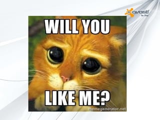 The document discusses security concerns surrounding social media, emphasizing the risks of sharing personal information and the actions of hackers and cybercriminals. It includes quotes about online safety, particularly relating to password management. Various Avast software products for security and protection are mentioned.