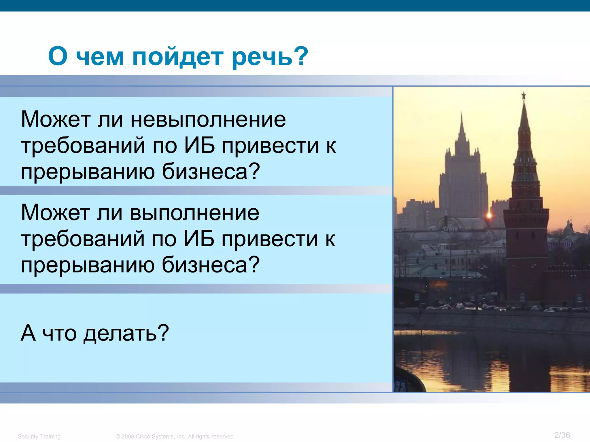 Документ обсуждает последствия выполнения и невыполнения требований по информационной безопасности (ИБ) для бизнеса, отмечая риски и законодательные аспекты. В нем рассматриваются вопросы аттестации объектов информатизации, сертифицированной криптографии и лицензирования, а также штрафы за нарушения в области защиты информации. В заключение подчеркивается важность соблюдения требований для предотвращения приостановки бизнеса и юридических последствий.