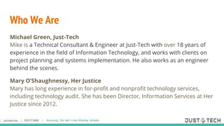The document discusses phishing attacks, defining them as attempts to bait users into revealing sensitive information for financial gain. It outlines methods of phishing, recognition tips, and necessary prevention strategies, including technology and human-centered measures. Additionally, it emphasizes the importance of continual training for staff and provides resources for further information.