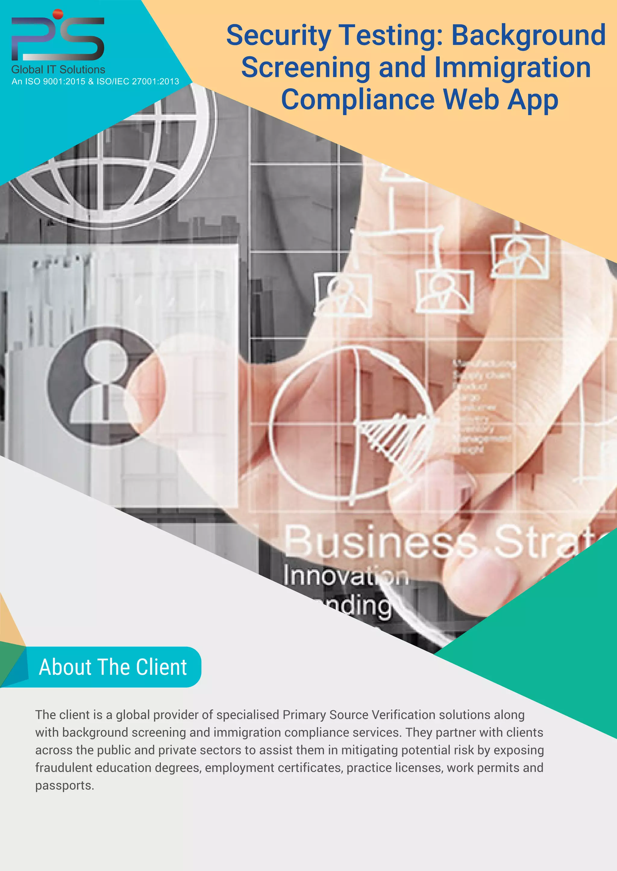 This document discusses security testing performed for a client that provides background screening and immigration compliance services. The key challenges included testing an application with detailed user information, frequent changes, and complex user classifications. Security testing was needed to identify vulnerabilities in the application's authentication, integrity, authorization, confidentiality, availability, and non-reputation. The engagement involved analyzing the security architecture, identifying threats and vulnerabilities, developing test cases, and executing tests using tools like Wireshark, WebScarab, Burp Suite, Nikto, and Nmap. Major vulnerabilities around injection, authentication, sensitive data exposure, and more were identified and addressed.