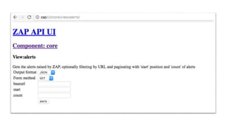 The document discusses security testing for containerized applications. It outlines different layers of containerized apps including code, dependencies, and Docker images. It then describes various security testing techniques that can be applied to each layer, including static analysis tools for code scanning, dependency scanning, and Docker image scanning. It also covers dynamic/runtime testing using passive and active scanning with tools like OWASP Zap. The document advocates building these security tests into the CI/CD pipeline and only deploying container images that pass all tests through a process of image certification. It demonstrates some of these techniques on a sample Lolcode application.
