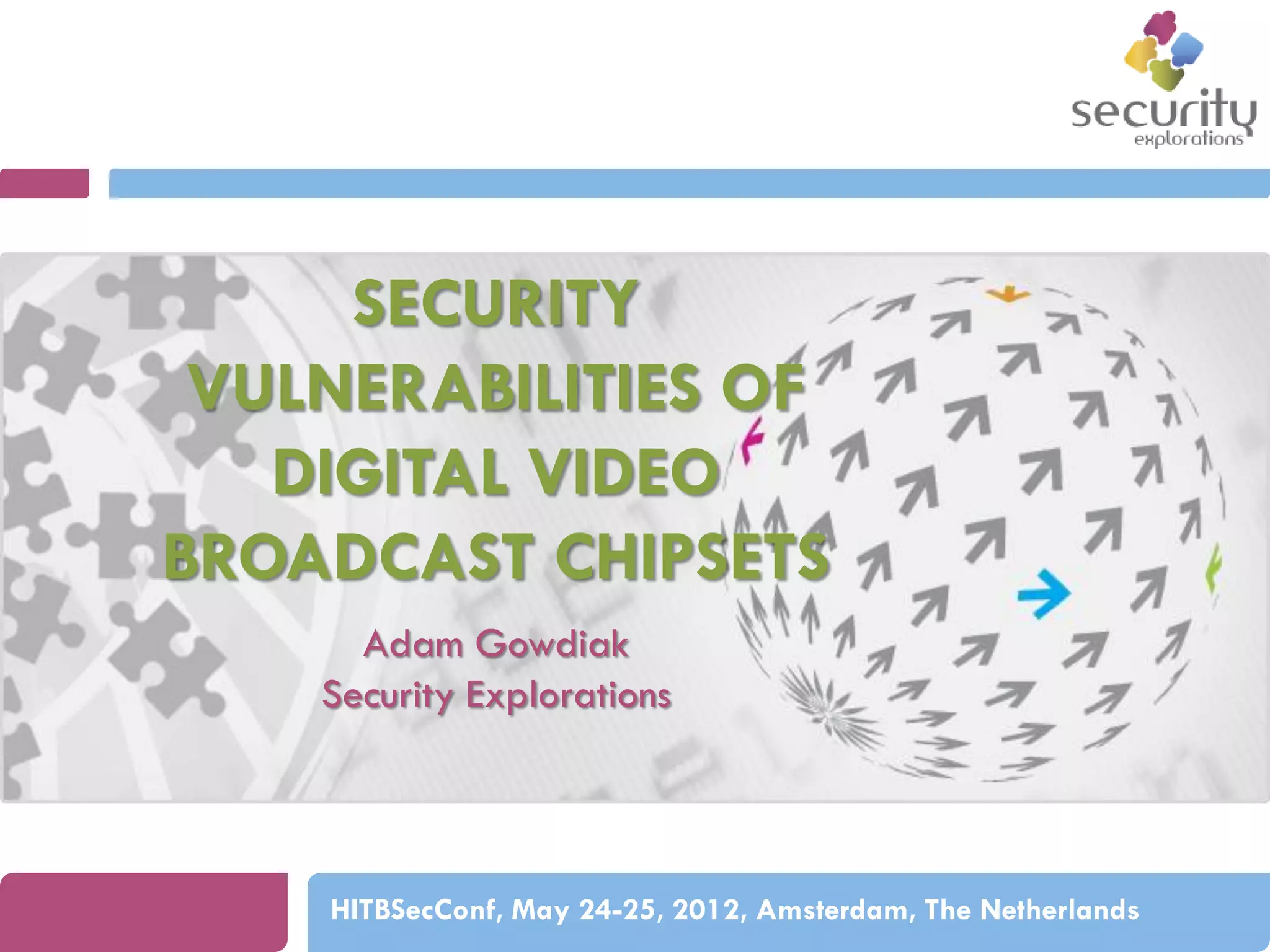 The document discusses security vulnerabilities in digital video broadcast chipsets used for digital satellite TV. It begins with background on digital satellite TV security, including how premium content is encrypted and control words are used for decryption. It then describes challenges with analyzing the security of proprietary broadcast chipsets, which implement encryption pairing functions in hardware. The document outlines researchers' approach to gathering information through documentation and reverse engineering to analyze chipset security implementations and identify weaknesses.