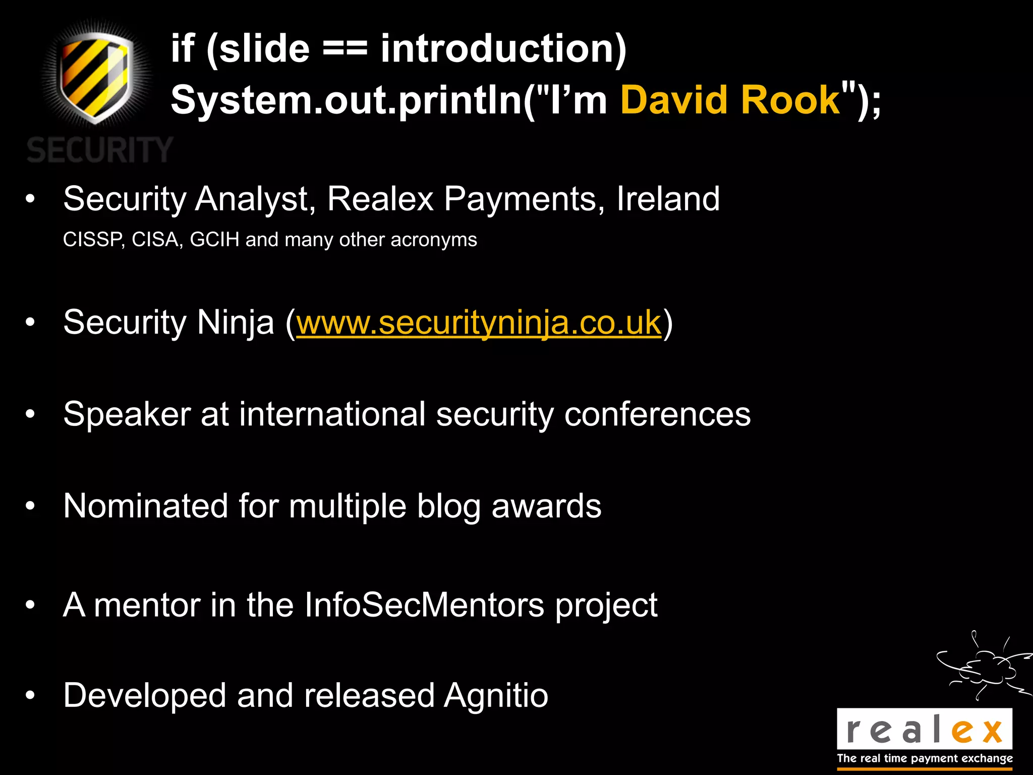 - David Rook is a security analyst and speaker who developed Agnitio, a tool to help with manual static code analysis.