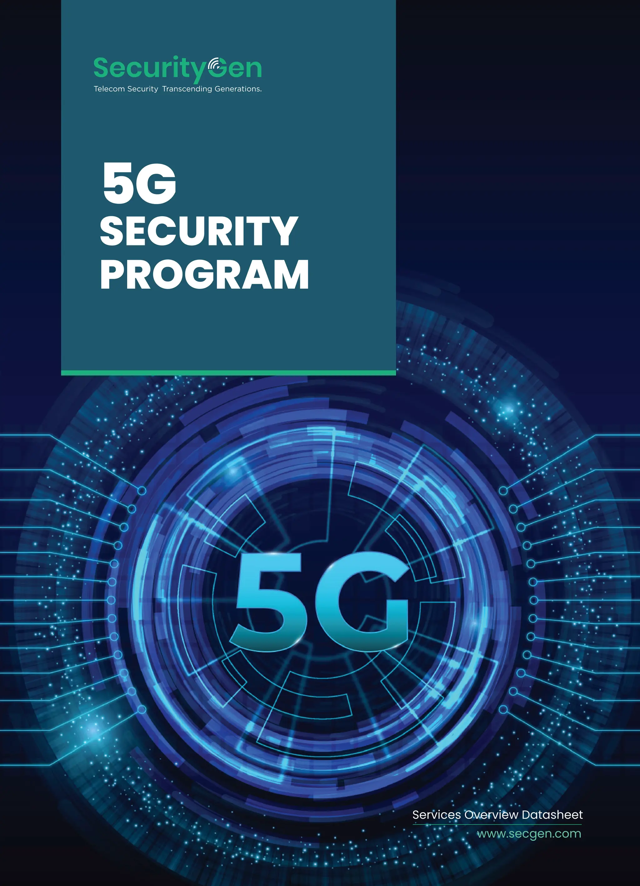 The document outlines a 5G security program designed to help mobile network operators (MNOs) develop robust security strategies for their 5G infrastructure amidst increased competition and regulatory requirements. It emphasizes the need for end-to-end security, compliance with industry guidelines, and proactive measures to protect against evolving threats in a complex telecom landscape. SecurityGen, founded in 2022, offers services to evaluate threats, recommend actions, and assist in building a secure 5G environment for operators.