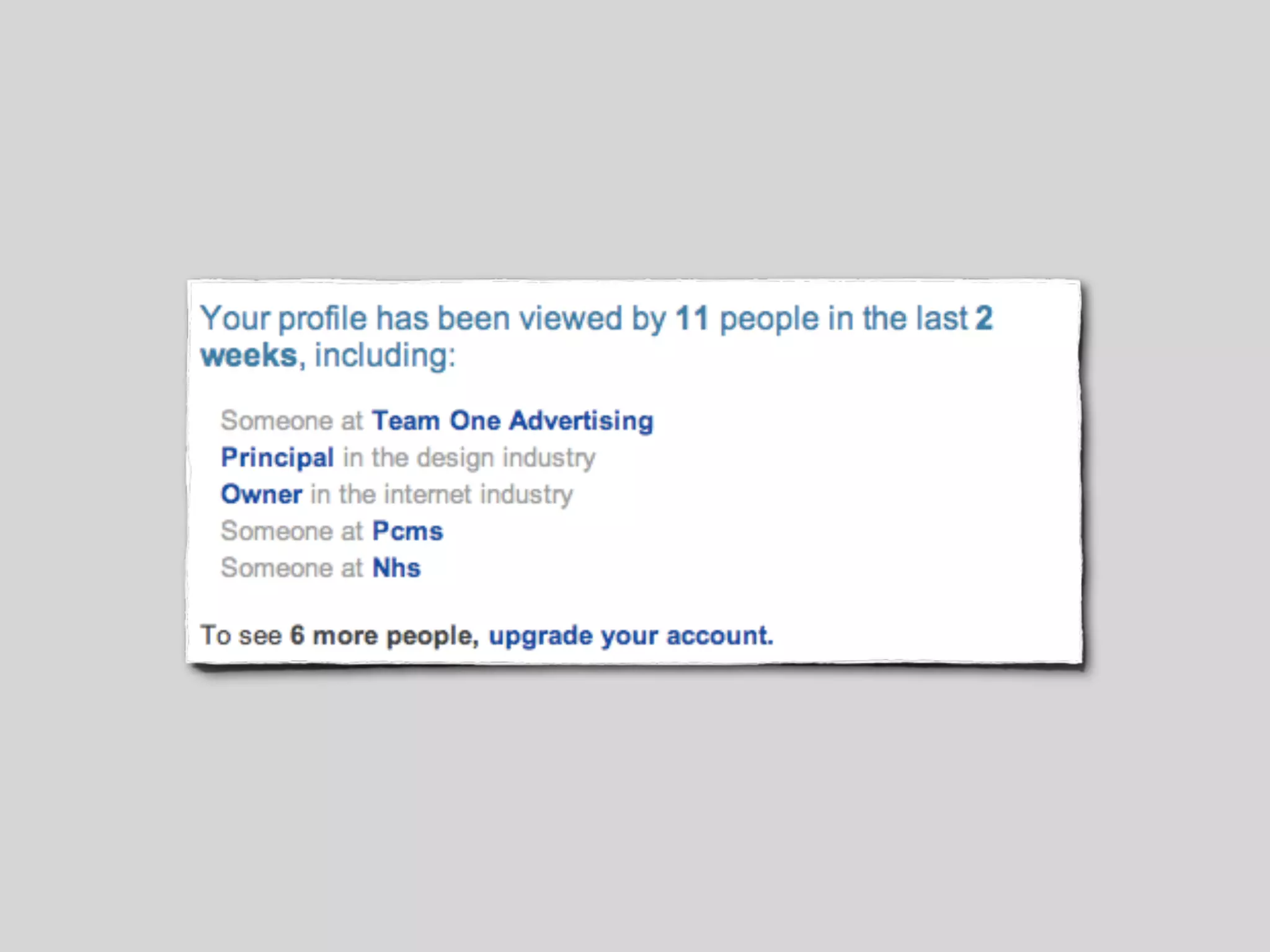i ckse: urci What do we know about people? Qe Ex we're curious we're also afraid of change we seek out patterns we like to order and organize things we're intensely self-centered we're lazy we're highly visual thinkers and learners we like to be the hero of the story we respond to our name and other first person cues we don't like to make choices, but we like choice we like to be in control (and we like to be guided) we find novelty and surprise interesting ...and so on