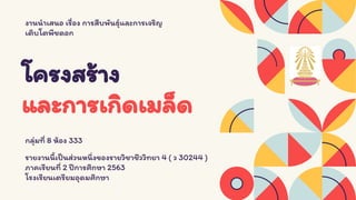 โครงสร้างและการเกิดเมล็ด กลุ่มที่ 8 ห้อง 333 สมาชิก น.ส.ณัชชา จิตร์ส่งสุข เลขที่ 7 น.ส.รติ ทิพากรสุวรรณ เลขที่ 19 นายกฤษฏ์เมธี นิจวิภาศิริกุล เลขที่ 25 นายจิรวัฒน์ ตู้จินดา เลขที่ 27 นายปรินทร์ จารุสุทธิประภา เลขที่ 35 แผนการเรียน วิทยาศาสตร์-คุณภาพชีวิต ภาคเรียนที่ 2 ปีการศึกษา 2563 โรงเรียนเตรียมอุดมศึกษา