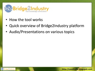 This document summarizes sessions for preparing for the CEED (Common Entrance Examination for Design) exam. It outlines topics that will be covered in three preparation sessions, including understanding users and their traits, materials, mechanics, and manufacturing, and general knowledge. It provides more detail on understanding users, the 3M topics, and what to focus on before the exam, emphasizing visualization over lengthy written answers. The goal is to help exam takers feel prepared for the variety of question types they may encounter on the CEED.