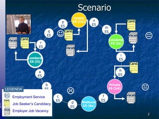 The document describes the process of building reference and local ontologies to enable semantic interoperability between European employment services (ES) data sources. It involves: