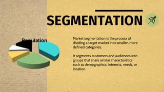 The document covers the concepts of segmentation, targeting, and positioning (STP) in marketing, detailing how markets can be divided into distinct groups based on demographics, geography, psychographics, and behavior. It emphasizes the importance of effective market segmentation for identifying target markets, along with strategies for targeting specific customer segments and positioning brands to create a unique identity in consumer minds. The analysis includes examples such as Coca-Cola and Pepsi to illustrate competitive positioning and shifts in target market strategies.