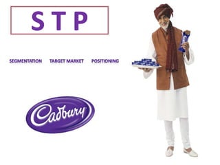 The document discusses segmentation, targeting, and positioning (STP) as key marketing strategies. Segmentation involves dividing the total market into smaller subgroups. Targeting is selecting specific segments to enter. Positioning is how a product is defined in consumers' minds relative to competitors. Effective segmentation is measurable, accessible, substantial, differentiable, and actionable. Targeting evaluates segment size, growth, competition, accessibility, and alignment. Positioning strategies include differentiation by product, price, people, etc. Examples provided are of ITC Bingo snacks and Airtel mobile network positioning their offerings for specific consumer segments in India.