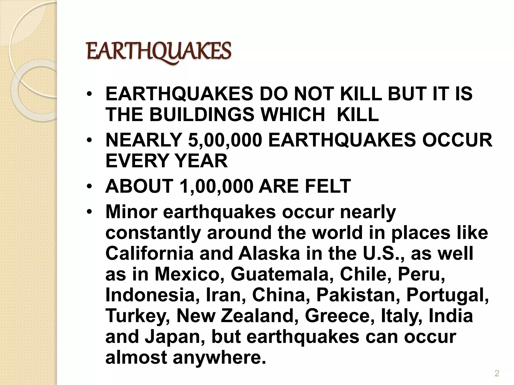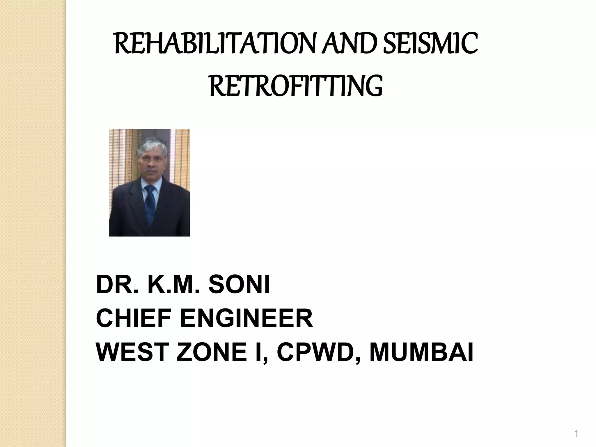 The document outlines the importance of rehabilitation and seismic retrofitting in buildings to mitigate the impact of earthquakes, which are increasingly destructive due to poor construction practices, particularly in developing countries. It discusses various causes of building failures and deterioration, methods for retrofitting and strengthening structures, and guidelines for the selection of materials and techniques. The need for adequate training and policy implementation for effective retrofitting practices is emphasized to improve earthquake resistance in existing buildings.
