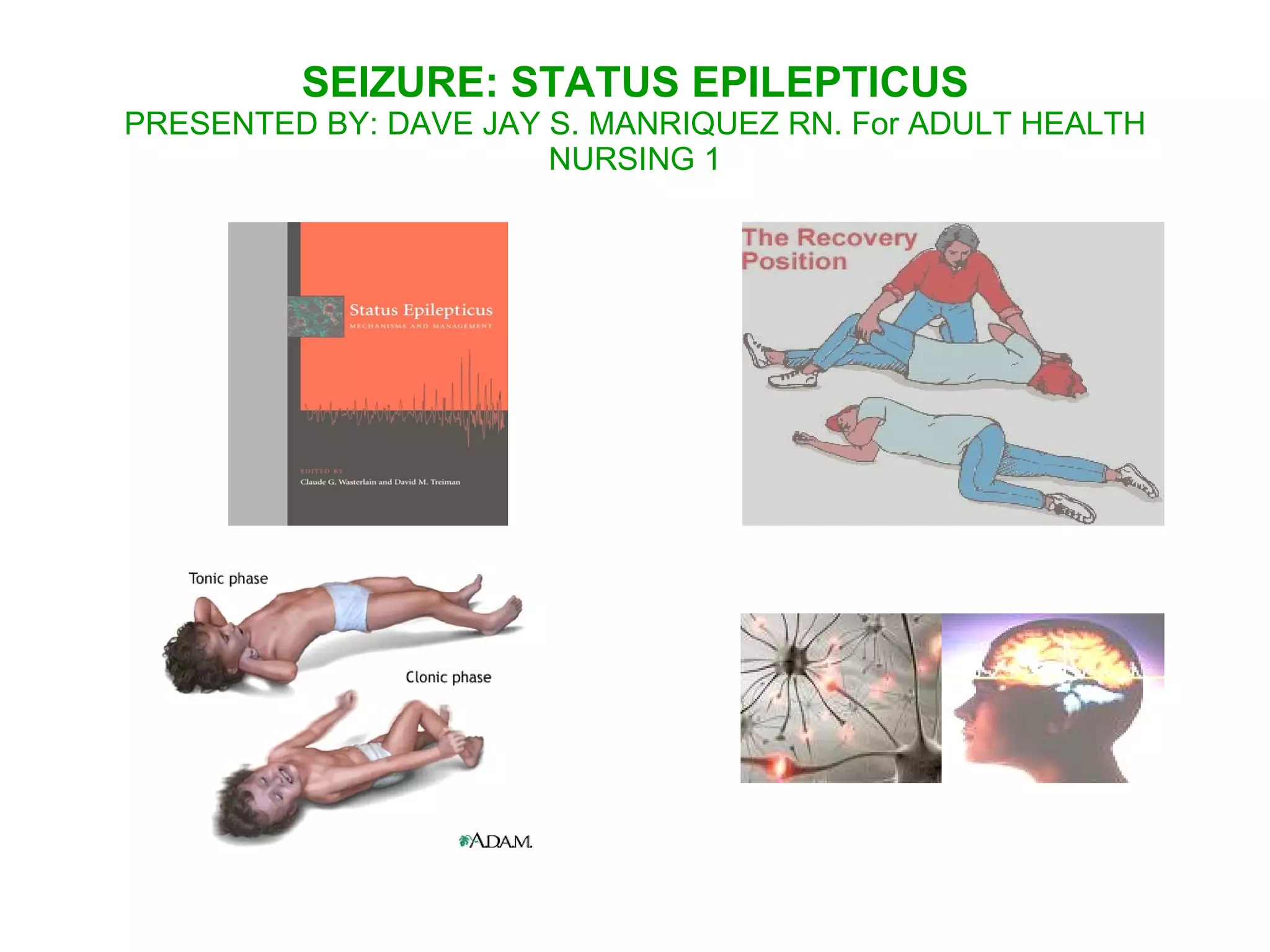 1. Status epilepticus is a medical emergency characterized by prolonged seizures without recovery between seizures or continuous seizure activity lasting more than 30 minutes.