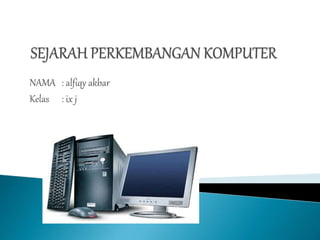 Dokumen ini menjelaskan perkembangan komputer dari generasi pertama hingga generasi kelima, termasuk perubahan komponen utama seperti penggunaan tabung vakum, transistor, dan integrated circuit. Setiap generasi menampilkan kemajuan dalam ukuran, kecepatan, dan kapasitas, serta menjelaskan peran komputer dalam konteks sejarah, terutama selama Perang Dunia II. Generasi kelima masih merupakan konsep dalam pengembangan, diharapkan mengintegrasikan kecerdasan buatan dan pemrosesan paralel.