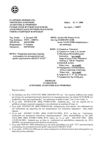 ΠΡΟΣ: Arysta Life Science S.A.S.
