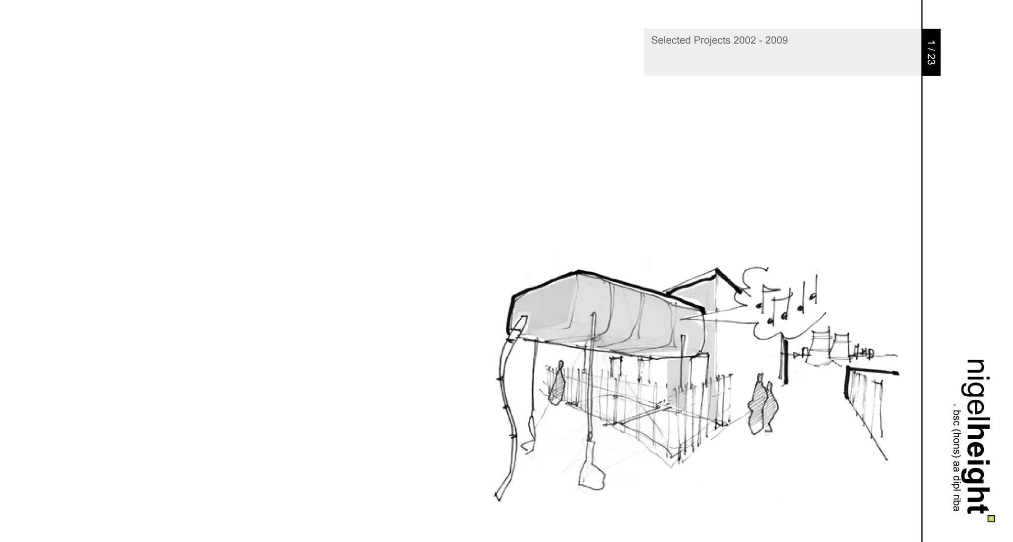 The document summarizes Nigel Height's qualifications and experience as an architect. It provides details of several commercial and residential building projects he worked on from 2002-2009 in London and surrounding areas, including mixed-use developments, office buildings, residential units, and hotel designs. It highlights his experience in new builds, renovations, managing listed buildings, and working within conservation areas.