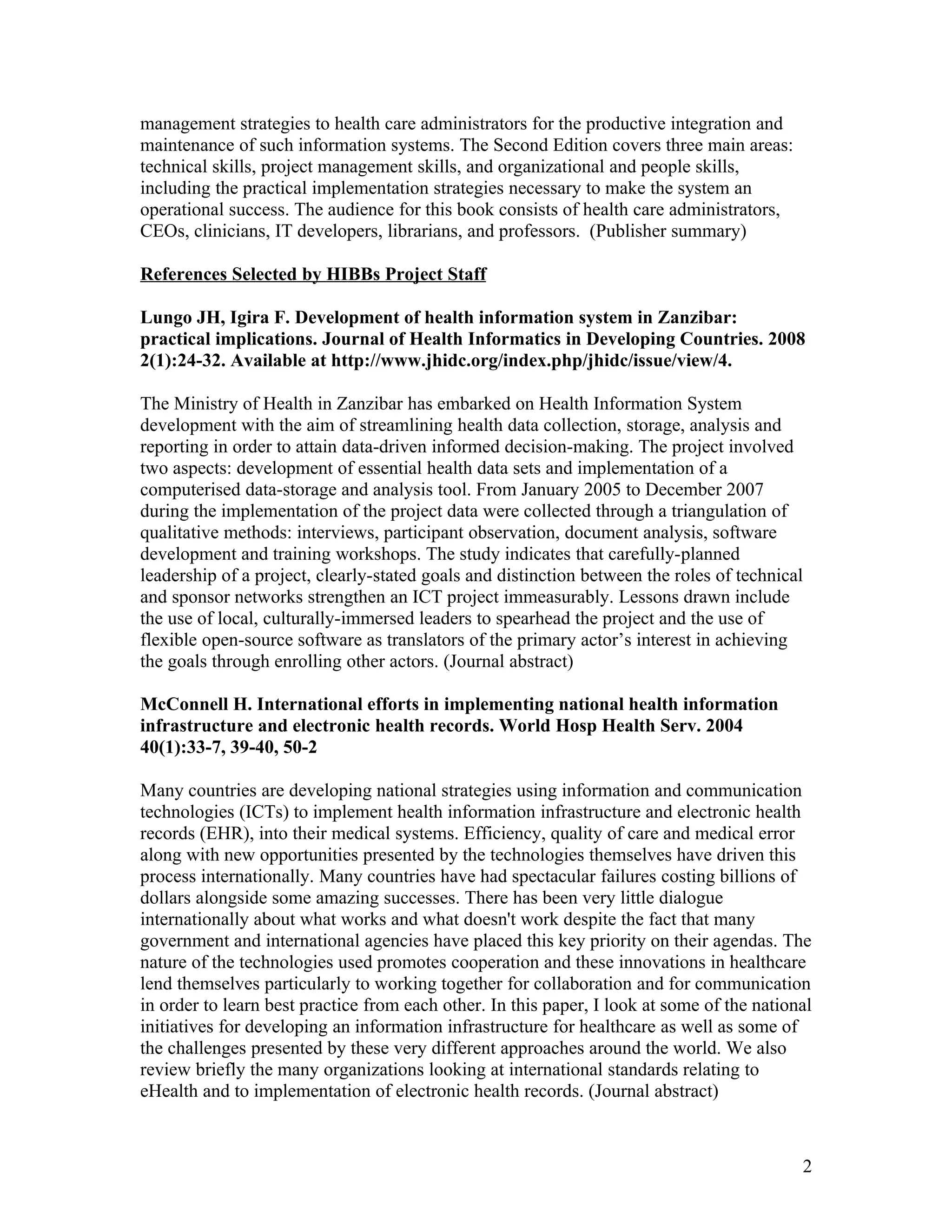 4) Case studies of health information system development challenges in developing countries and the need for flexible, context-sensitive strategies.