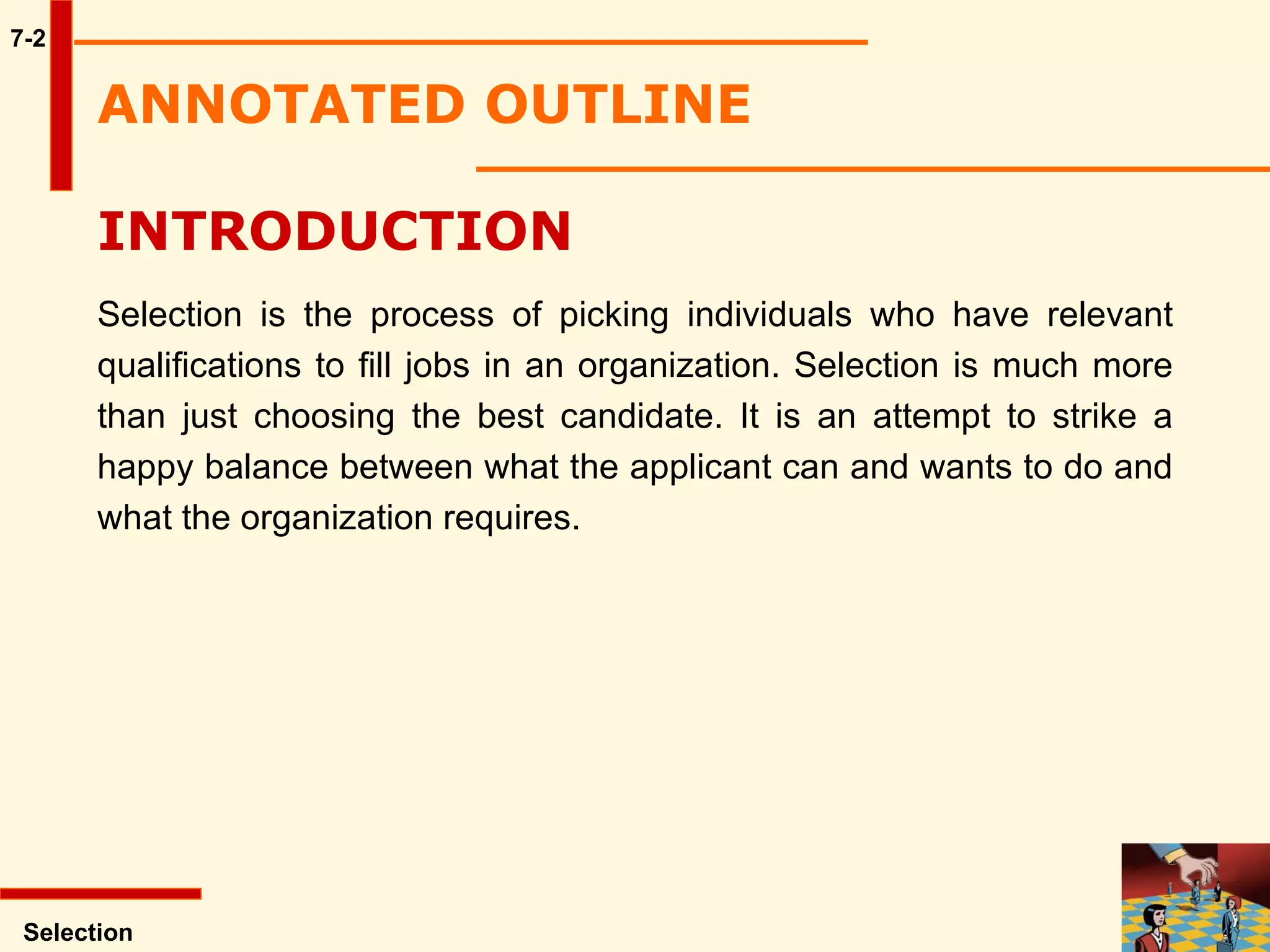 The document discusses the process of selection in organizations. It describes the various steps in the selection process including reception, screening interviews, application forms, selection tests, assessment centers, interviews, medical examinations, and reference checks. It also discusses different types of selection tests and interviews as well as standards for effective selection tests.