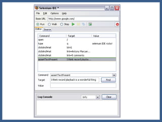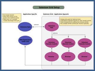 The document summarizes some key points about using Selenium for test automation: